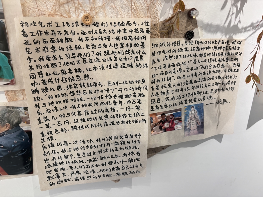 在留言区域,北辰写下:“我惊奇地发现,老人们并不如我想象中一般沉默寡言,他们也有自己孩子气的幽默、有强烈的分享欲、有脆弱细腻的情感。这个项目的真谛,并非‘为疗愈而疗愈’,而是以平等的友谊为桥,去触碰、安抚老人们沧桑的灵魂。”