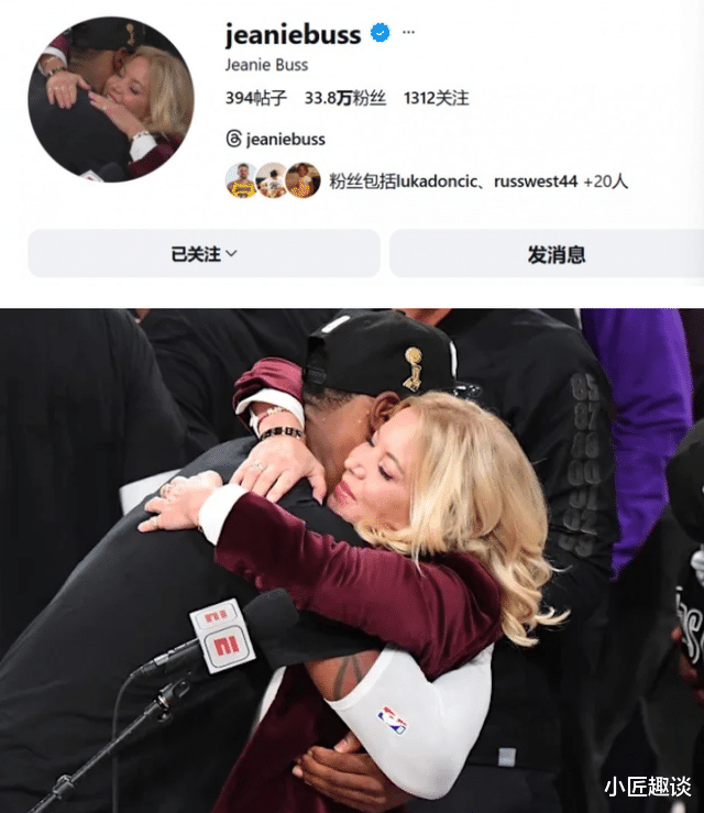 为了安抚詹姆斯,珍妮-巴斯还将自己的社媒头像换成了2020年湖人夺冠,二人相拥的照片。