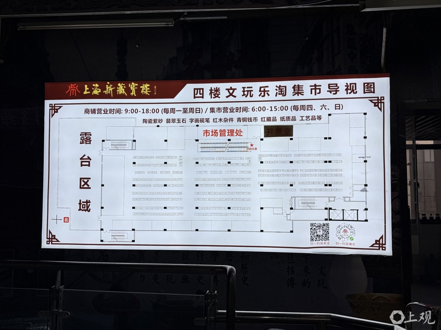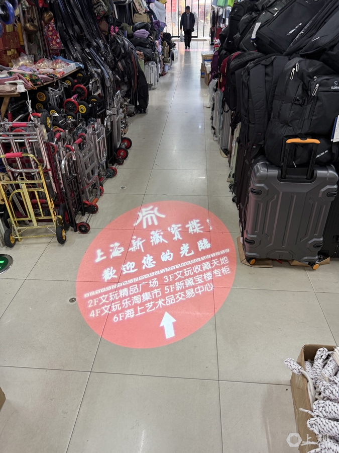 近日,“城隍庙旧书市集即将重启,本周日(1月18日)起恢复正常营业”的消息引起关注。1月18日一早7时多,记者来到城隍庙福民商厦(新藏宝楼),从一楼小商品摊穿过,地上的投影显示“二楼文玩精品广场、三楼文玩收藏天地、四楼文玩乐淘集市、五楼新藏宝楼专柜、六楼海上艺术品交易中心”,搭乘扶手电梯来到二楼后便发现,向上楼层的电梯都停了,且灯光越来越暗。