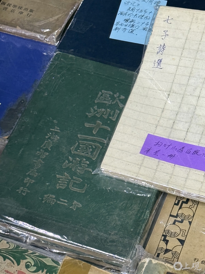 78岁的摊主许泽章自上世纪九十年代起先后在绍兴路和思南路开过两家书店,2008年起正式在文庙书市摆摊,前几年搬来新藏宝楼,他的摊位上不乏20世纪初的老书。“陆陆续续从私人手里收来,以前人家也藏书,这些书就是一代代人在传承。他们年纪大了放弃了,那时我年轻,买下来。现在我年纪大了,又要把它让出来。”许老先生称自己是“以书养书”,他身后的摊主接话道:“美好的传承,要把文化传承下去。”
