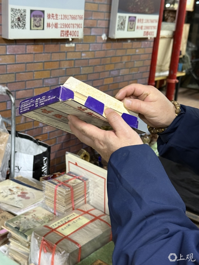 在四楼市场管理处,记者见到了市集的新业主方。张明明告诉记者,1月8日左右,市场恢复了水电,但一周后又发生情况,不得已的情况下,目前用临时手段保障市场运营。“水电恢复以后,这里的小商户更有信心了。我们希望市场能够保持正常运作,保持旧书、文玩的烟火气,让市中心城隍庙一直有一个大家喜爱来的落脚点。”张明明是“00后”,他坦言,年轻人可能对旧书市场并不是很了解,“但纸质书我个人认为还是比较吃香的,读起来更有书香的感觉,还是会有部分年轻人喜爱的。”